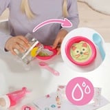 Her kommer Emma! Hun er allerede kendt fra den animerede serie BABY born, som kan ses på YouTube og Toggo. Emma kommer i sit nye outfit og med 10 accessories. Hun har også sin magiske tallerken med sig: Hvis du putter vand på indsatsoverfladen i tallerkenen, dukker lækre retter op der. Hvis du sætter hende på potten efter at have spist (med vand) eller drukket og presser hende på maven, vil hendes lille og store butik også dukke op der. Hvis Emma drikker vand fra sin flaske, kan hun endda græde og skal trøstes blidt. Den magiske sut hjælper med dette: Hvis du drejer den 180 grader, lukker eller åbner deres øjne. Hvis du lægger hende i sengen for at sove, lukker hun øjnene selv uden sut. Men Emma kan meget mere: Hun er super adræt og kan endda tages med i badekarret, fordi hun tørrer ekstremt hurtigt. For at rengøre dukken korrekt efter leg kan benet fjernes for at skabe en større åbning til rengøring. Vand kan løbe så meget lettere af. For endnu mere kreativ leg medbringer Emma sin flaske, sut, tallerkener, skeer, måltider og potte samt en ble, sit fødselspas og to venskabsarmbånd - til et langt og kærligt venskab mellem barn og dukke.Art-Nr.: 100064639