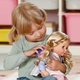 BABY born® Sophia Rose 36cm fra ZAPF Creation er en blød dukke med blondt hår af høj kvalitet, der kan styles og styles efter ønske. Dukken er iført en lyserød kjole, en lyseblå jakke, lyserøde leggings og hvide sko. Da hun bliver lagt i seng, lukker hun øjnene helt alene. Med en størrelse på 36 centimeter er den perfekt til små børns hænder og er takket være sin lettere vægt ideel som begynderdukke til småbørn fra 12 måneder.Art-Nr.: 100144059